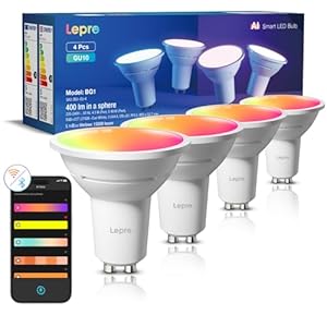 Lepro BG1 AI GU10 Smart Bulb, 400lm Dimmable WiFi Smart GU10 LED Spotlight Bulbs, Music Sync, Works with Alexa & Google, RGB Colour Changing & Tunable White, Personalized AI Lighting Designer, 4-Pack
