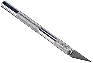 Compact 12 cm scalpel designed for detailed cutting tasks. Simple construction makes it straightforward to use in craft and office settings.