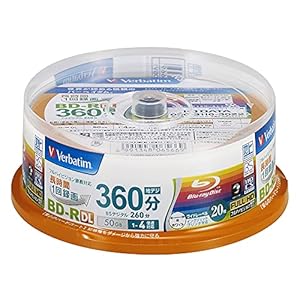 Dual-layer 50GB BD-R DL media, rated at 4X write speed. Supplied as 20 discs in a factory-sealed spindle for bulk use.