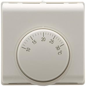 A mechanical dial sets the desired temperature by moving internal contacts to the chosen setpoint, while prominent markings make the setting visible at a glance. No menus or programming logic are required.