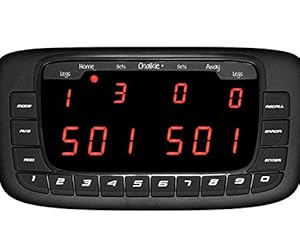 Electronic scorekeeping handles calculations automatically and updates running totals, preventing common arithmetic errors associated with manual scoring. Controls appear designed for direct input and quick adjustments.