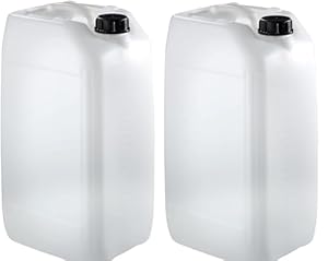 Robust 25-litre water containers with clear side markings in 5-litre increments. Wide-mouth openings and secure lids make filling and carrying straightforward.
