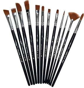- • Brush Control: Pointed nylon tips and a 12-size assortment for detailed work through broader strokes