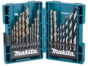 The set is supplied as an 18-piece combination selection of Makita accessories intended to cover common drilling and fastening requirements. Pieces are grouped to suit a range of routine DIY tasks according to the product description and user feedback.