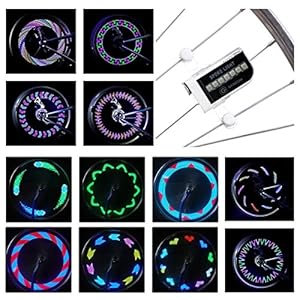 Each spoke light contains 14 RGB LEDs that flash through eight colours and assemble into 30 distinct patterns, updating approximately every four seconds. Patterns appear on both sides of the wheel and become more complete as speed increases.