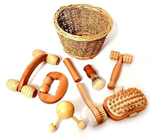 - • Tool Selection: Eight wooden pieces including rollers, tripod massager, massage stick and brushes