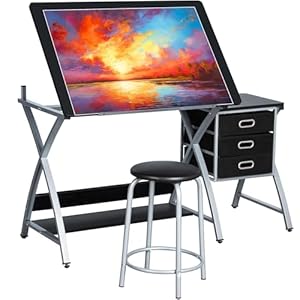 Suited to artists, illustrators and students who need a stable, adjustable studio surface with built-in organisation. The combination of a tiltable, easy-clean tabletop, three-drawer storage and a reinforced double-X steel frame is the defining strength. Overall, a practical long-term studio investment that balances durability and everyday convenience.