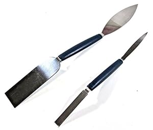 Two-piece set includes a small 192mm x 8mm and a large 254mm x 26mm tool made from stainless steel. Plastic handles give a secure grip while flexible blades help achieve smooth fills.