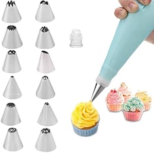 - • Tip Variety: Includes 12 stainless steel nozzles for stars, rosettes, intricate lattices and more