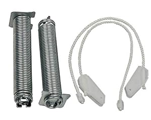 Replacement parts include two hinge springs and two ropes supplied to replace worn components used in the door balancing system. The components align with the door hinge assembly so standard fastening points are reused during installation.