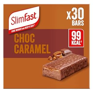 Low-calorie choc caramel snack bars sold as a 30 x 26 g multipack. Designed to slot into the SlimFast 3.2.1 plan and to be eaten at home or on the move.