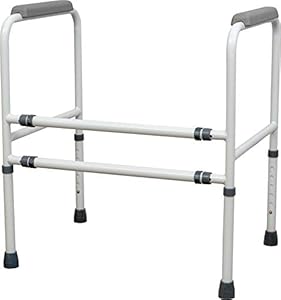 Height adjustments enable the frame to align with most toilet rim heights while fixed width gives lateral stability. Non-slip feet reduce movement on bathroom floors and help the frame remain in place.