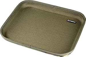 A rigid plastic inner core provides structural support while the outer cover adds abrasion resistance, helping the tray survive being moved between bags. The compact profile makes carrying straightforward for day sessions.