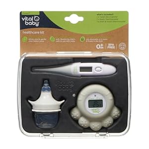 The Vital Baby PROTECT Healthcare Kit is suitable for new parents and caregivers seeking a compact set of everyday newborn health tools. The combination of a soft silicone nasal aspirator, a flexible-tip fever thermometer with memory, and a waterproof room and bath thermometer delivers practical routines for home and travel. Durable, easy-to-clean components and a portable design create strong long-term value for routine baby care.