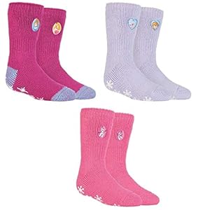 Children's thermal socks built to retain heat and add grip for indoor play, HEAT HOLDERS Girls Thermal Slipper Grip Socks. Soft, fluffy interiors make mornings and playtimes more comfortable for girls who hate cold toes. Are the licensed designs and practical grip right for busy children who run from bedroom to living room?