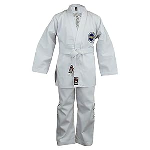 Made from high-quality polycotton with strong seams and a Velcro front jacket closure. Sold as a complete set with jacket, trousers and white belt, and features ITF embroidery on the legs and jacket back.