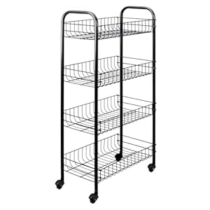 - • Storage Capacity: Four wire baskets on a slim 41 x 23 x 84 centimetre frame, suitable for stacked household items