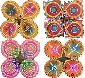 Sixteen individually painted diyas arrive as a matched assortment, so colour variety is available straight away for table centres and rangoli edges. The compact quantity lets users space lights across several rooms or create a concentrated display.