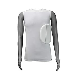 Lycra fabric forms a close-fitting vest that follows the torso contours and stretches with movement. The flexible construction reduces bulk while keeping the protector held securely in place.