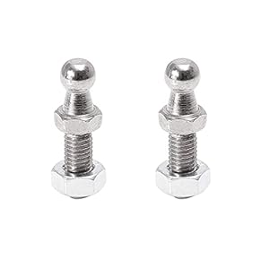 Studs match 10mm ball sockets commonly found on many gas struts and include the nuts required for fastening. Geometry mirrors standard replacement studs to allow bolt-on installation.