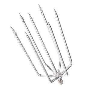 Seven tines and barbed points create a canopy-style head that traps prey effectively. An 8mm screw mount allows attachment to DIY poles for extended reach.