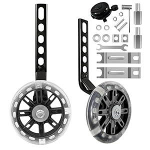 Ideal for parents teaching young riders on 12 to 20 inch single speed bicycles who want an easy-to-fit support system. Strong steel arms, mute light-up ABS wheels and a full installation kit make learning safer and more enjoyable. While cost will vary, durable construction and adjustable fit offer good long-term value through extended use.