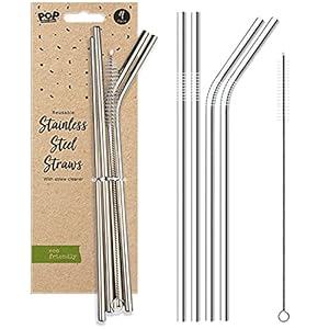Quality reusable stainless steel straws are supplied as a four-pack consisting of two bent and two straight pieces. A silver metal finish is noted in the product description.