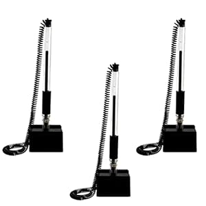 Three gel pens attach to a round holder with an adhesive chain and spring joint. Smooth black gel ink reduces bleed and the set includes three pens to meet daily writing needs.