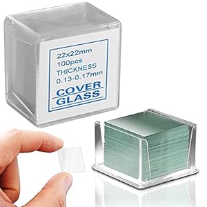 Suitable for students, hobbyists and small labs that need consistent, thin cover slips for microscopy and craft use. The pack of 100 ultra-clear 22 mm square glass slips, 0.13–0.17 mm thick, delivers reliable optical clarity and a harder finish than many plastics. Bulk quantity and durable glass make them a practical, longer-lasting supply for classrooms and model-making work.