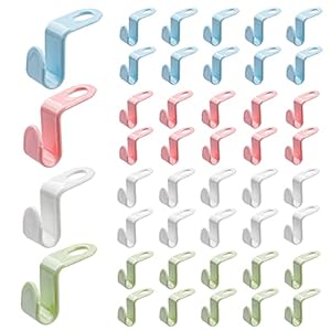 A set of 40 chainable hanger connectors made from polypropylene in four colours. Each hook measures approximately 4.5 x 2 cm and clips onto most standard hangers.