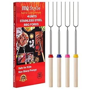Kitchen accessories that make campfire toasting safer and neater, using telescopic marshmallow forks. The set of four bright-handled BBQStyle Marshmallow Toasting Forks brings quick identification and family-friendly safety to evenings outdoors. Are they sturdy and convenient enough to become a regular part of camping and backyard nights?