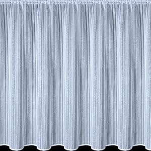A 4 metre wide, 36-inch (91 cm) drop net curtain in white, with a modern striped spot pattern. Made from 100% polyester, finished with a straight bottom and available in multiple drops.