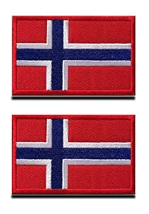 Two embroidered Norway flag patches measure 3.15 x 2 inches (8 x 5 cm). Durable, washable construction with hooked and looped backing for quick attachment and removal.