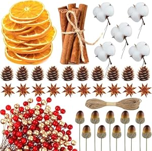 - • Decorative Variety: Assortment includes berries, dried orange slices, acorns, cinnamon, pinecones and star anise