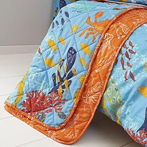 Children's bedding that adds a playful, cosy layer to bedtime and doubles as a handy cover for naps, presented as Happy Linen Company Quilted Throwover. Comfortable and easy to live with for families, children will enjoy the ocean-themed print. Is the size and warmth the right fit for your child's bed and routines?