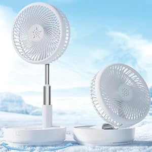 Adjustable height and folding mechanics allow use as a desk fan, floor fan or compact travel companion for varied environments.