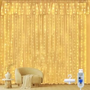 300 warm white LEDs form a 3m by 3m curtain with ten drop strings and a 3m power lead. USB power and an IP44 rating make the set suitable for indoor windows, parties, weddings and sheltered garden displays.