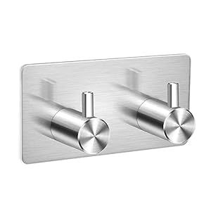 - Double hook layout, holds two towels or a robe and towel separately and neatly