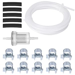 - Includes: 1 main fuel hose, 5 black rubber fuel hoses, 1 fuel filter, 10 clips