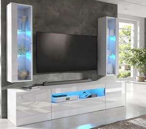 Each item in the set is supplied with its own blue LED light strip and a matching power adapter, ready to connect. Lights are pre-specified per unit so cabinets and TV stand light independently.