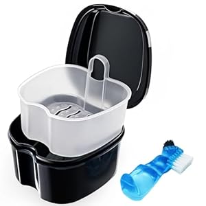 - • Best for: People with removable dental appliances who want compact, hygienic soaking and storage