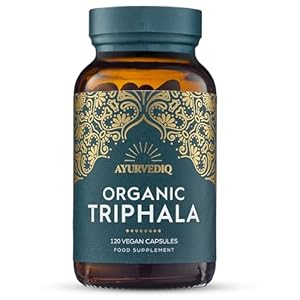 Capsules combine powdered Amla, Bibhitaki and Haritaki as Triphala. Soil Association certified and manufactured to GMP standards with no fillers.