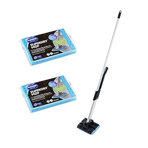 Floor cleaning solution for hard surfaces, promising quick, streak-free results. Household and workplace users who want low-fuss maintenance and a neat finish will like Addis Superdry Sponge Floor Mop. Will a built-in self-wringing handle and two spare heads make routine mopping noticeably easier?