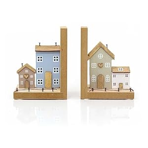 Ideal for readers who want decorative, compact shelf support in cottage-style interiors or children's rooms. The pair combines a natural wood finish with townhouse silhouettes and charming accents for an attractive shelf display. Durable wooden construction and timeless styling offer long-lasting usefulness and good gift value.
