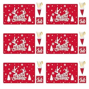 - Set includes: 6 placemats, 6 coasters, 6 stocking cutlery sets
