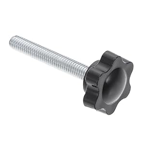 Screw-in design uses a threaded carbon steel bolt paired with a star-shaped ABS handle, allowing secure engagement with T-track or mounting holes. Smooth lines and finger grip reduce slippage during rotation.