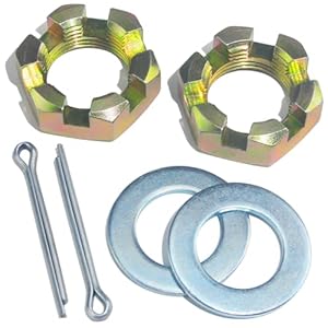 - Pack contents: 2 sets, total 6 pieces: 2 spindle castle nuts, 2 washers, 2 cotter pins