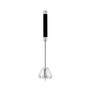 Hand-push whisk with a 10-circle stainless-steel head and manual up-and-down action. No batteries or cables, designed for easy aeration and straightforward cleaning.
