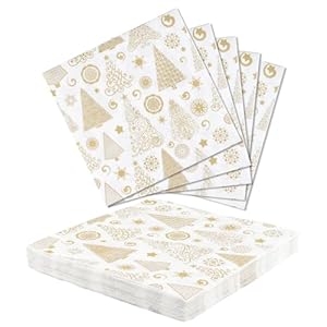 Paper party napkins designed for seasonal table settings, adding a festive look while handling light spillages, Yiran Christmas Napkins. Bright gold tree prints lift table decor and create a Christmassy atmosphere for guests. Are the size, thickness and pack quantity suitable for dinner plates and cocktail receptions?