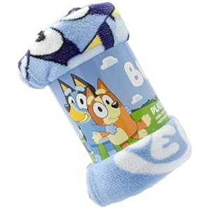 Officially licensed Bluey blanket measuring 100 x 140 cm, made from 100% polyester. Soft feel suits snuggling and decorating children's rooms.